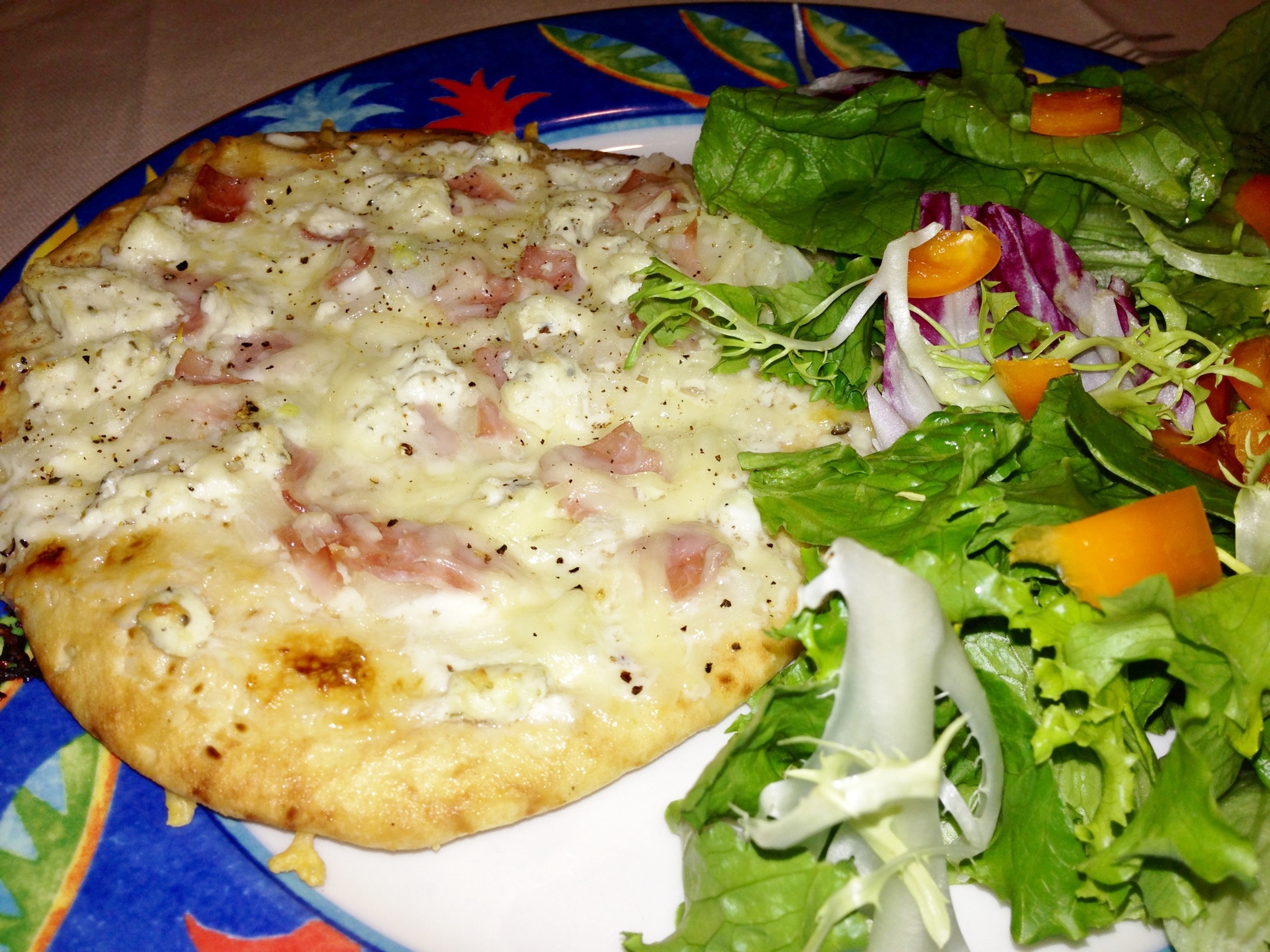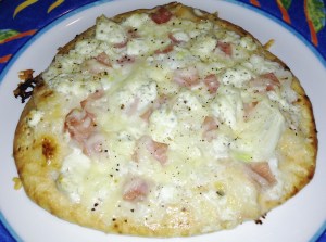 I’ve tried several combinations on my pita pizzas and so far, the following recipe is my favorite.